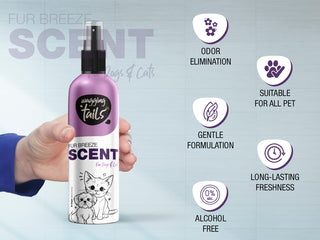 • Fur Breeze Scent, made with aqua, perfume, and aloe vera, leaves a long-lasting fragrance on your pet’s coat. It freshens up their fur, leaving them smelling clean and pleasant.